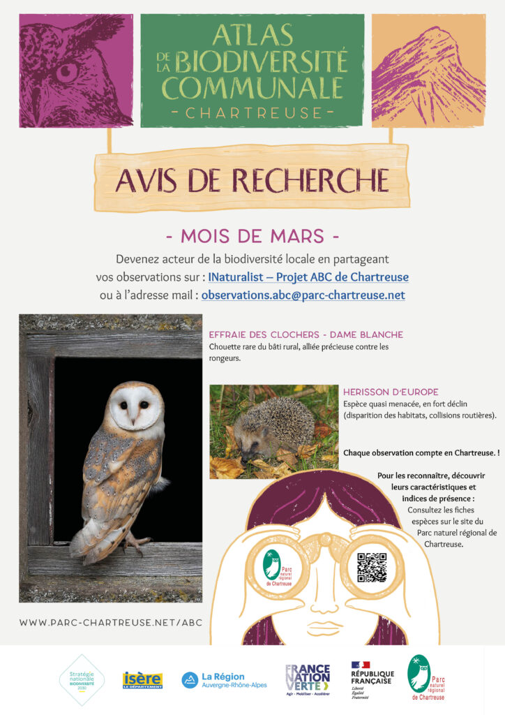 Si vous ne vous sentez pas à l’aise avec INaturalist, nous pouvez nous envoyer un mail à observations.abc@parc-chartreuse.net avec en contenu du mail : une photo ou un enregistrement de l’observation, une date et une localisation (point GPS).