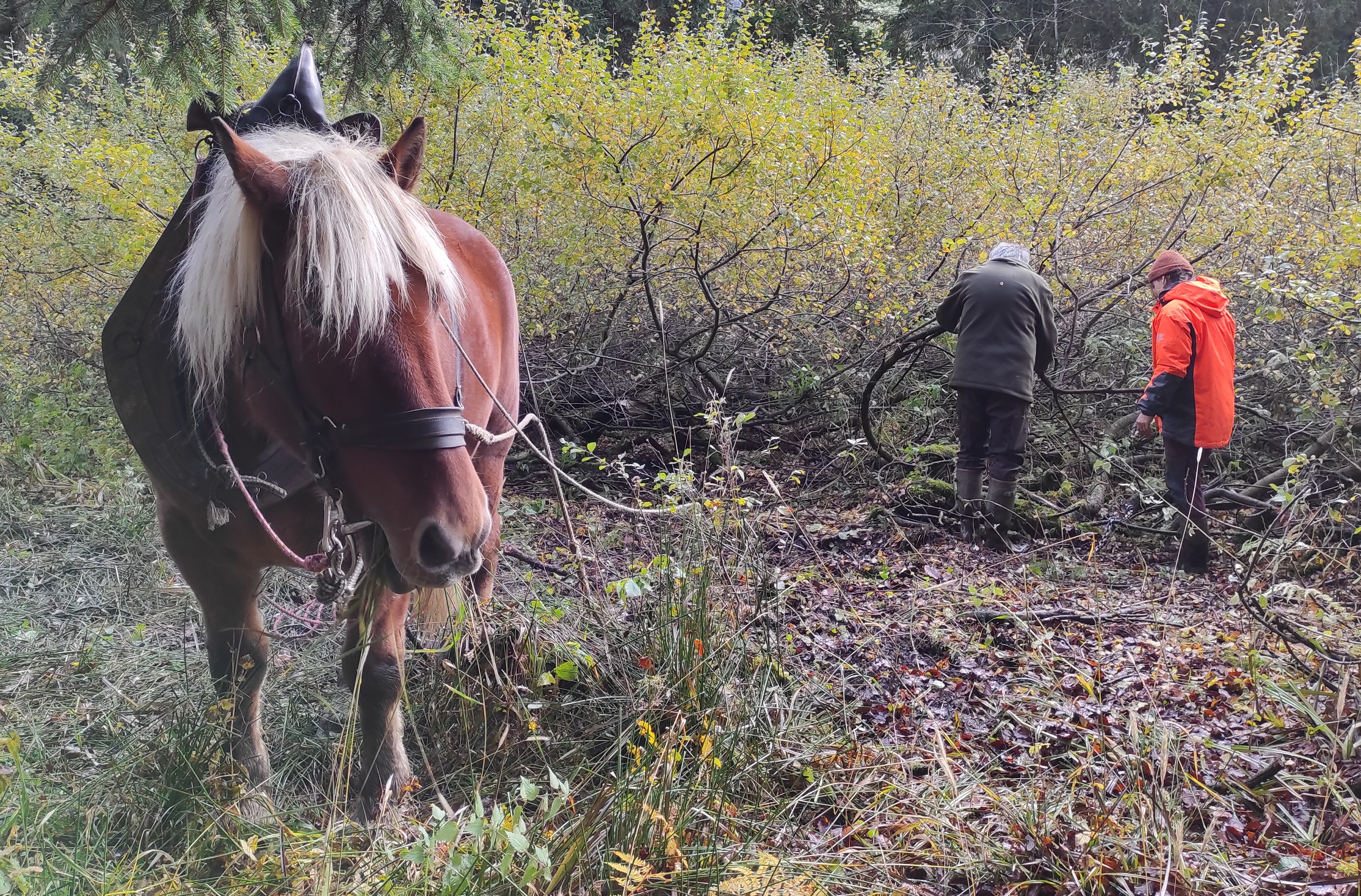 Dessouchage de saules via traction animale : redonner vie à une tourbière de Chartreuse