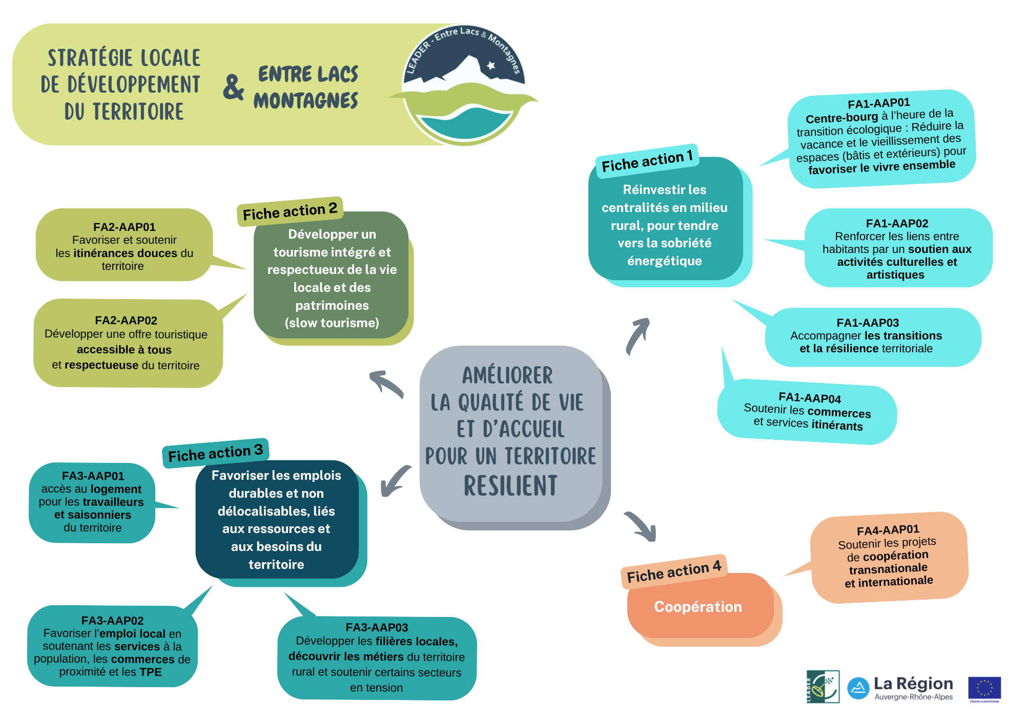 La stratégie de développement locale s’est construite en 2022, à partir des enjeux du territoire, issus du diagnostic et des ateliers de concertation, et des priorités régionales pour le programme LEADER.