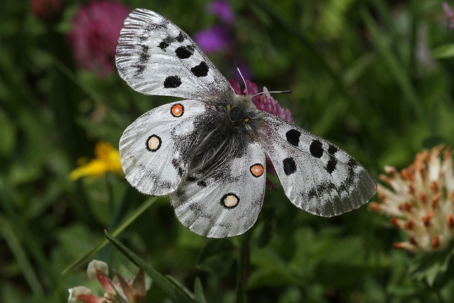 Le Parc de Chartreuse a réalisé un inventaire des papillons de jour et de nuit des forêts de plaine, de montagne, des zones humides, des prairies et des alpages. Aujourd’hui, plus de 500 espèces ont été inventoriées dont une quarantaine est remarquable. Cette diversité est étroitement liée à la position de la Chartreuse comme carrefour d’influences climatiques variées (continentales, méditerranéennes et alpines), mais aussi à la richesse floristique de ce massif. Au détour d’une pelouse rocailleuse vers 1300 mètres d’altitude, vous pourrez observer une espèce protégée emblématique de nos montagnes, l’apollon. La chenille de ce grand papillon se nourrie de petites plantes grasses nommées orpins.