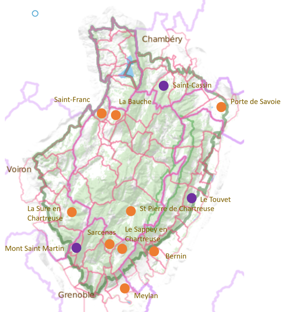 Bernin, La Sure-en-Chartreuse, Le Sappey-en-Chartreuse, Meylan, Saint-Pierre-de-Chartreuse, Sarcenas, La Bauche, Porte-de-Savoie et Saint-Franc.